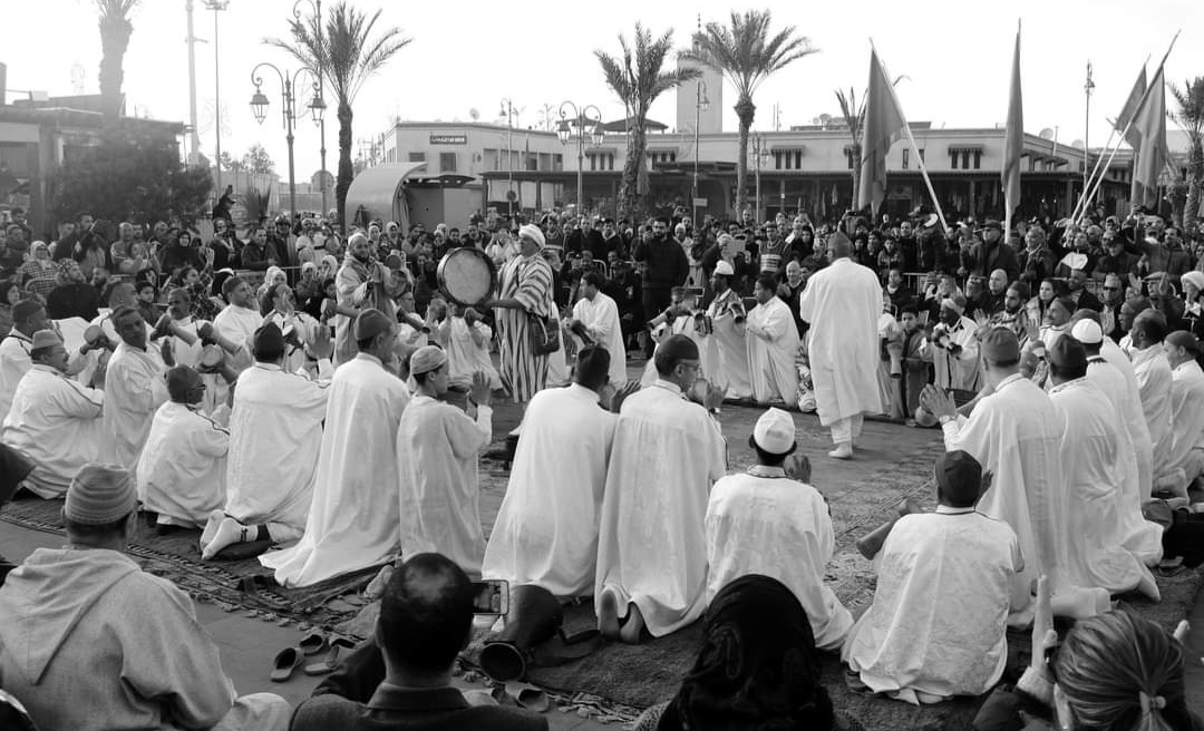الصورة بساحة لقزادرية . بمراكش سنة 2018 . لكور فرقة أفوس بابا . بقيادة لمعلم عبد الرزاق بالمقدم . رحمة الله عليه .