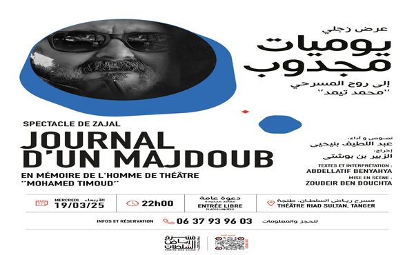 يستضيف مسرح رياض السلطان يوم الأربعاء 19 مارس، الزجال والإعلامي الشهير عبد اللطيف بنيحيى في فقرة " يوميات مجدوب" وهو عرض زجلي يقدمه الكاتب المسرحي الزبير بن بوشتى الذي سيغوص بأسلوبه الإبداعي في أعماق النصوص الزجلية للشاعر والإعلامي عبد اللطيف بنيحيى، مستحضرًا روح الراحل محمد تيمد في عرض يحتفي بذكراه وتأثيره في الكتابة والإخراج المسرحيين، يواصل مسرح رياض السلطان تقديم فقرات برنامجه الخاص بشهر رمضان المبارك "روحانيات رمضانية"