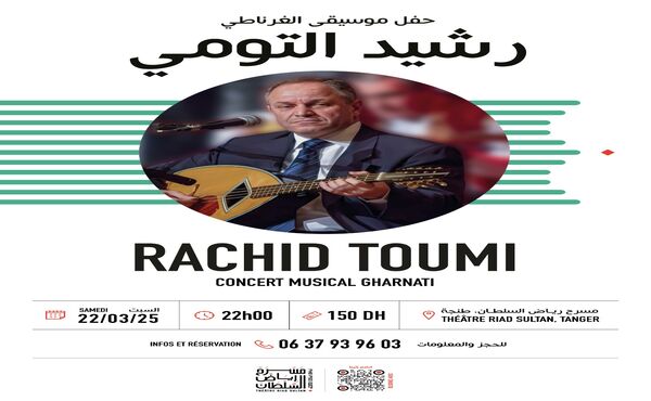 ويوم السبت 22 مارس، سيتم تقديم حفل غرناطي مع الفنان المبدع رشيد التومي، في ليلة غرناطية مشبعة بأصالة الطرب الأندلسي، حيث تتناغم النوبات والمقامات في احتفاء موسيقي يعيد إحياء أنغام من فردوس الأندلس المفقود، ضمن سيمفونية عشق تتردد أصداؤها بين عبق الماضي وألق الحاضر، لتبعث الروح في أنغامٍ ظلت شامخة كتراث خالد في وجدان الأجيال،