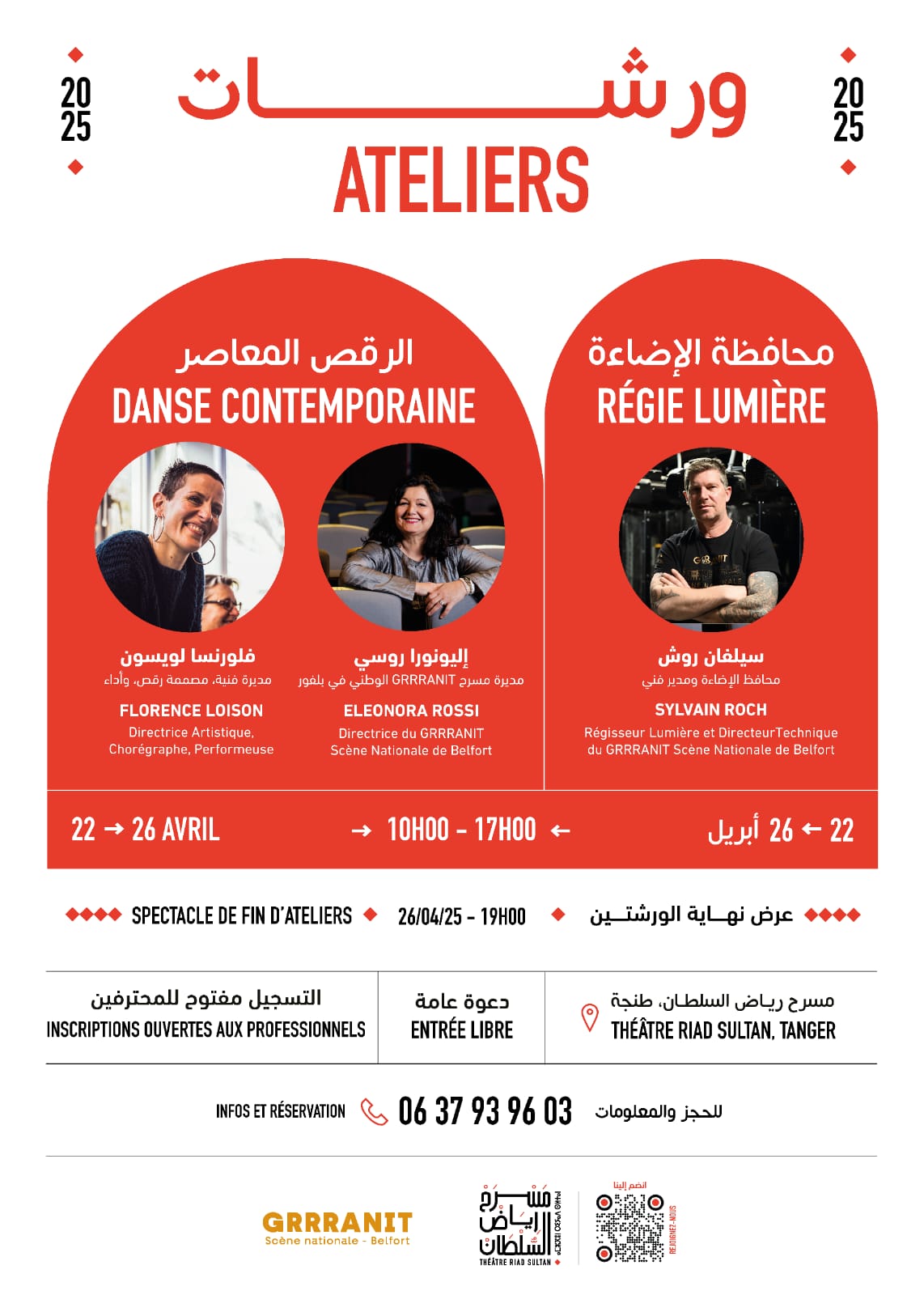 بالموازاة مع العروض الفنية، يفتح مسرح رياض السلطان أبوابه أمام المهنيين والشباب الراغبين في تطوير مهاراتهم من خلال ورشات وتكوينات احترافية، في إطار شراكة مع مسرحGRRRANIT – الركح الوطني بمدينة بلفور الفرنسية، الذي يشكّل شريكًا ثقافيًا استراتيجيًا لمسرح رياض السلطان، ويتيح للمشاركين فرصة فريدة للاحتكاك بمختصين في مجالات الإضاءة المسرحية، الرقص، وتسيير الفضاءات الثقافية، ضمن بيئة تحفّز الإبداع والتجريب.