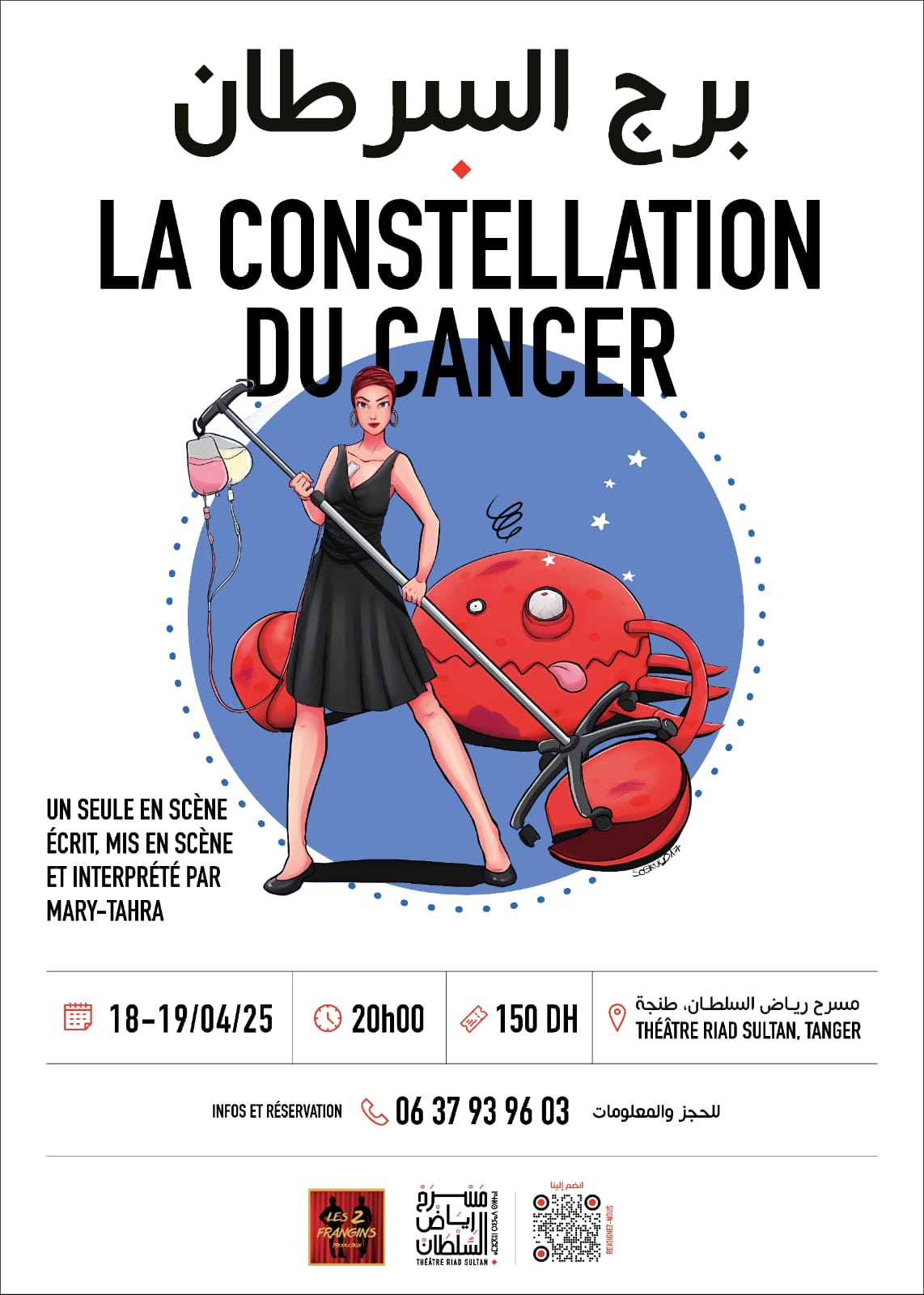 وسيكون لجمهور مسرح رياض السلطان، طيلة يومين متتاليبن، موعد مع عرض فردي "برج السرطان"، الذي كتبته وأخرجته وتشخصه ماري الطاهرة، وذلك يومي الجمعة 18 والسبت 19 أبريل، حيث تستدعينا لمرافقتها في تجوال عاطفي بين اليأس والمقاومة عبر دراما مؤثرة تمزج بين الفكاهة، الحنان والأمل، ويحتفي بالحياة رغم داء السرطان الذي تتعايش معه بشجاعة قل نظيرها.