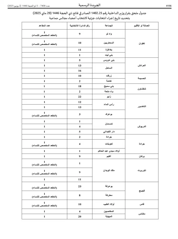 أعلنت وزارة الداخلية عن تنظيم انتخابات جزئية الثلاثاء فاتح يوليوز 2025، لانتخاب أعضاء مجالس جماعية بعدد من أقاليم المملكة.