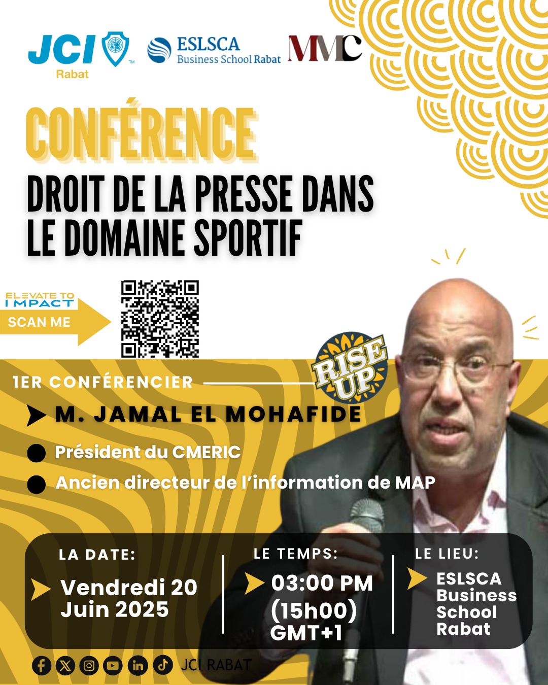 *نص المحاضرة التي نظمها ف فرع الرباط ل JCI الغرفةالفتية الدولية في 20 يونيو 2025 بمدرسة التجارة بالرباطRabat ESLSCA Business SCHOOL حول الصحافة الرياضية .