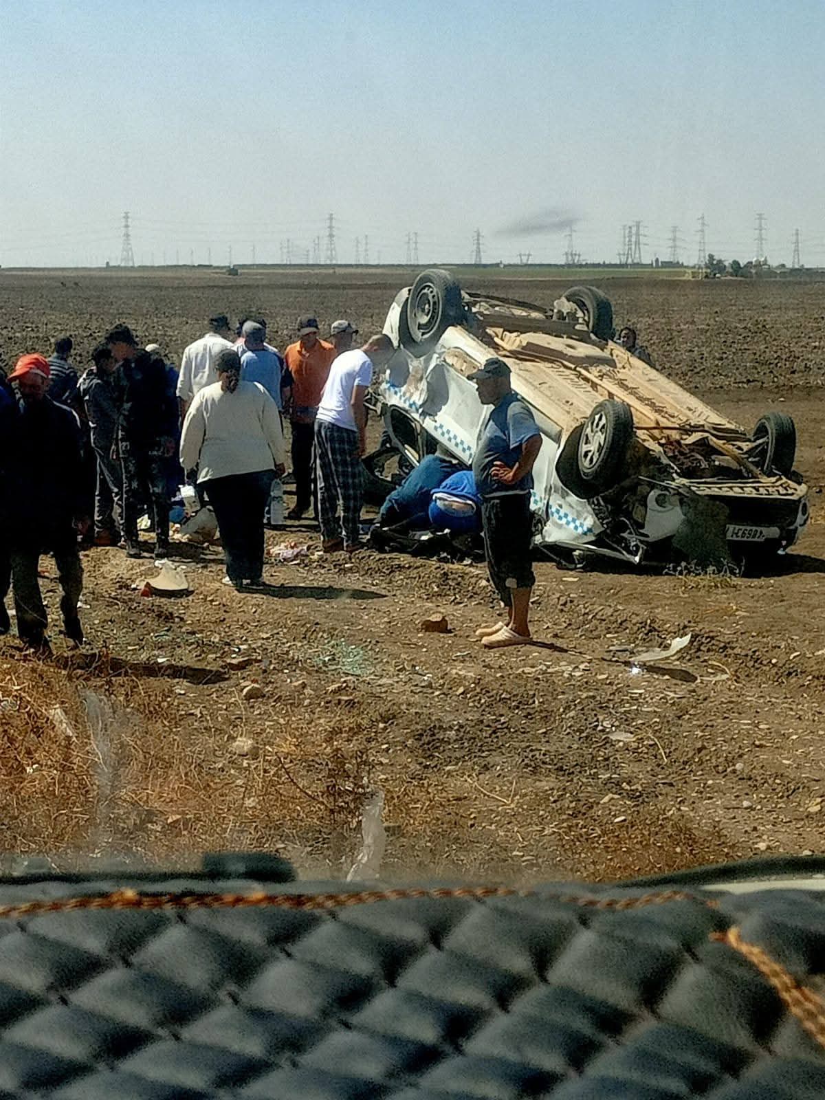 أصيب 7 أشخاص، من بينهم السائق، في حادث انقلاب سيارة أجرة كبيرة عند مخرج مدينة سطات المؤدي إلى مدينة الدار البيضاء عبر أولاد سعيد.