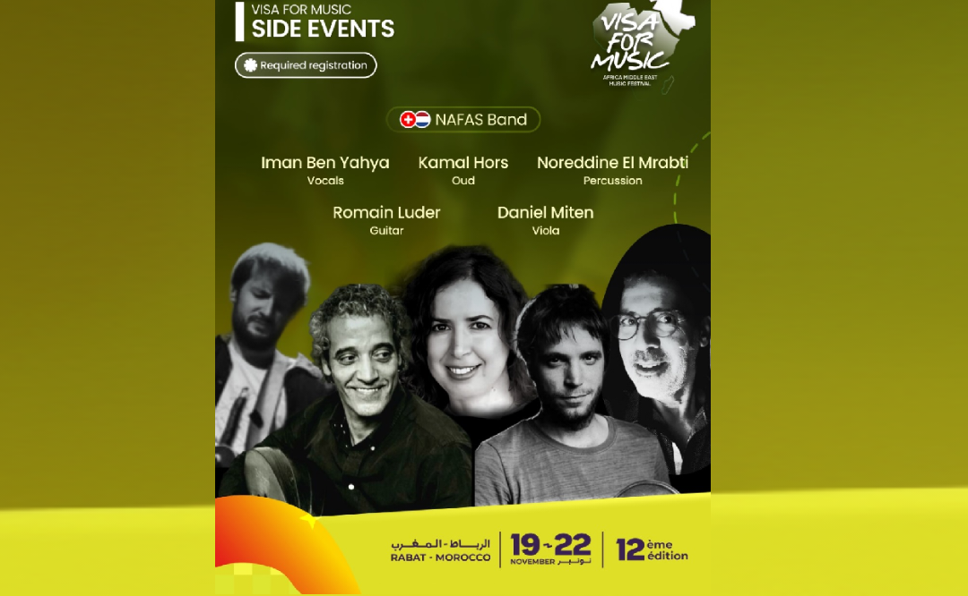 ضِمن فعاليات الدّورة 12 لمهرجان موسيقى بدون تأشيرة VISA FOR MUSIC يستضيفُ بيت الشّعر في المغرب المجموعة الموسيقية المغربية- السويسرية "نَفَس NAFAS" التي جعلت من الشّعر، وخاصّة الشعر المغربي مادّةً لعملها وأفقًا لاشتغالها الفني والإبداعي.