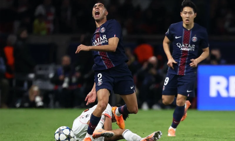 وأكد سان جيرمان في اليوم التالي أن الظهير المغربي تعرض لالتواء في كاحله الأيسر ولم يلعب منذ ذلك الحين.