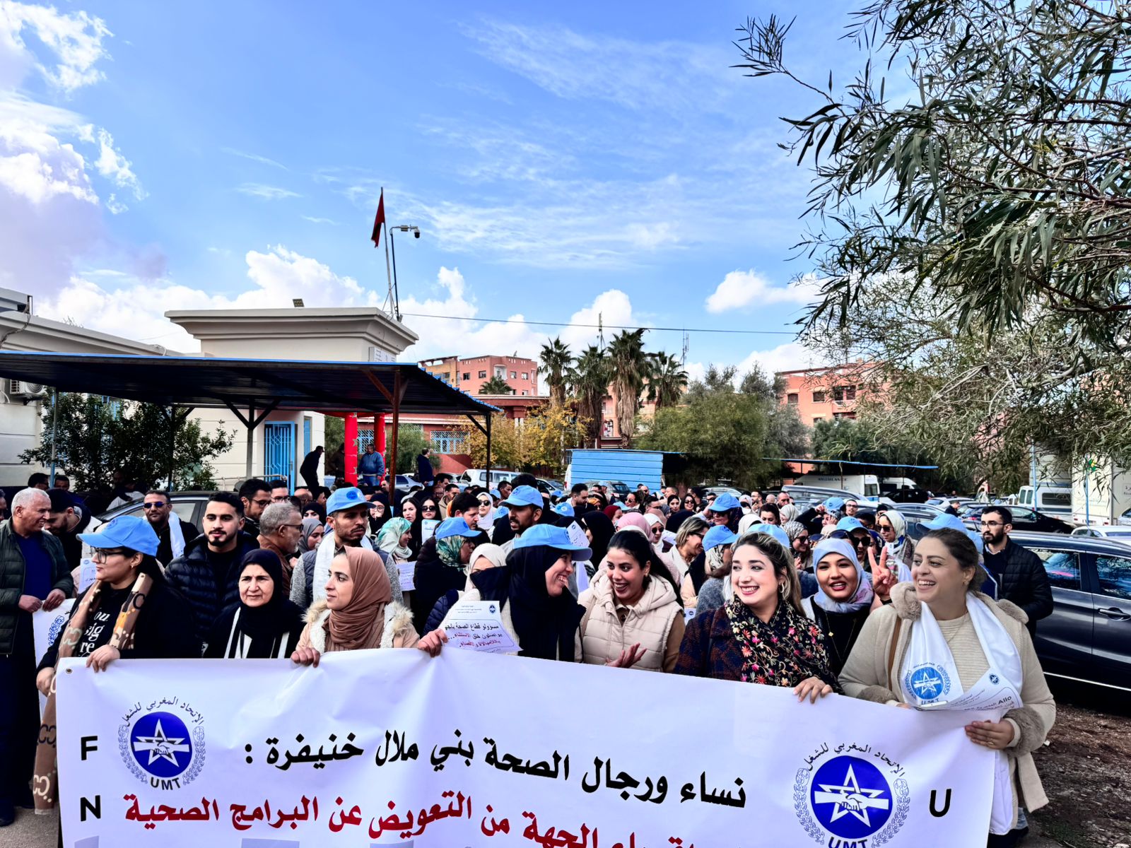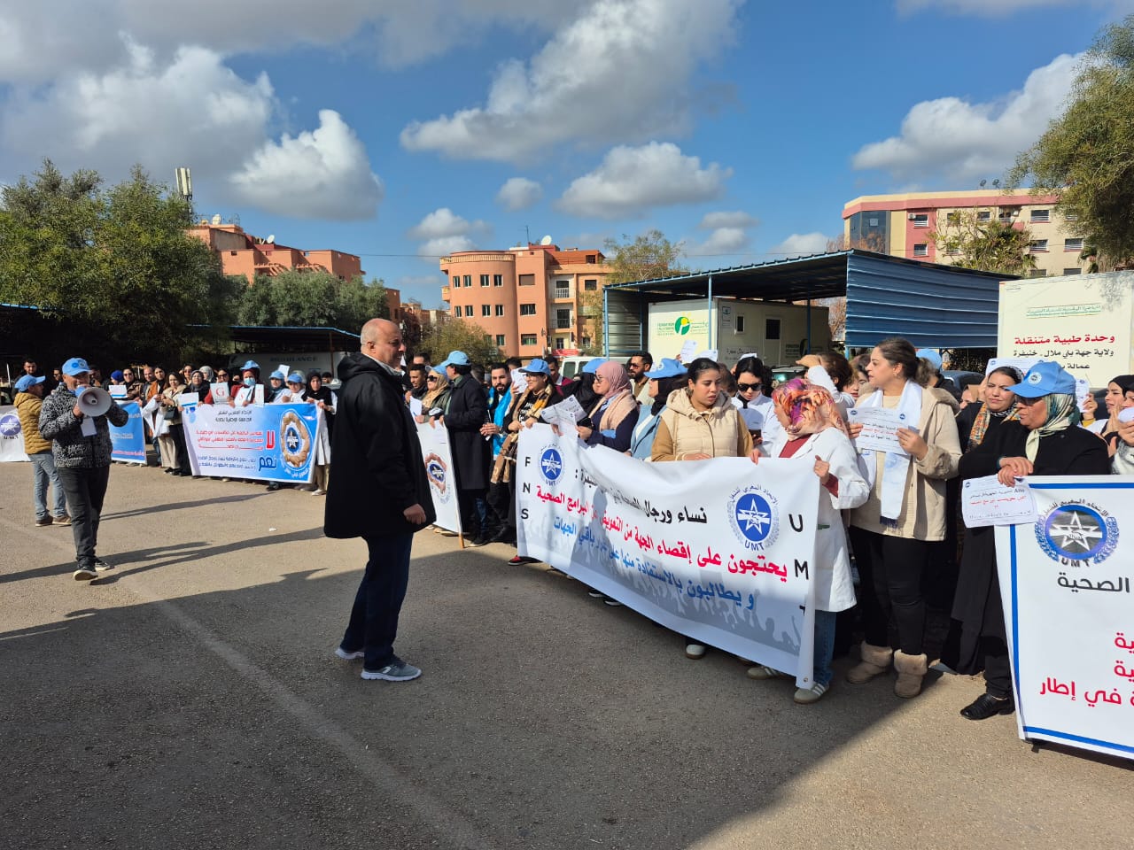 المشاركة المكثفة في الوقفة الاحتجاجية المركزية للجامعة الوطنية للصحة (إ م ش) أمام البرلمان يوم الأربعاء 10 دجنبر 2025 بالرباط، وتنظيم عملية التنقل الجماعي لهذه الغاية.