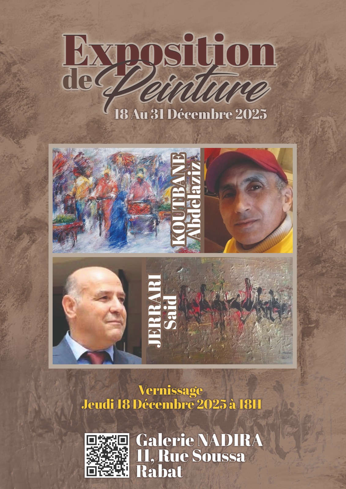 يحتضن رواق نادرة بزنقة سوسة بالرباط معرضا تشكيليا مشتركا، يقدم لعشاق الفنون التشكيلية جديد الفنانين عبد العزيز كوتبان وسعيد جيراري، انطلاقا من يوم الخميس 18 دجنبر 2025، حيث سينطلق حفل الافتتاح في الساعة السادسة مساء، ويستمر المعرض التشكيلي المشترك الى نهاية السنة، يوم 31 دجنبر 2025.