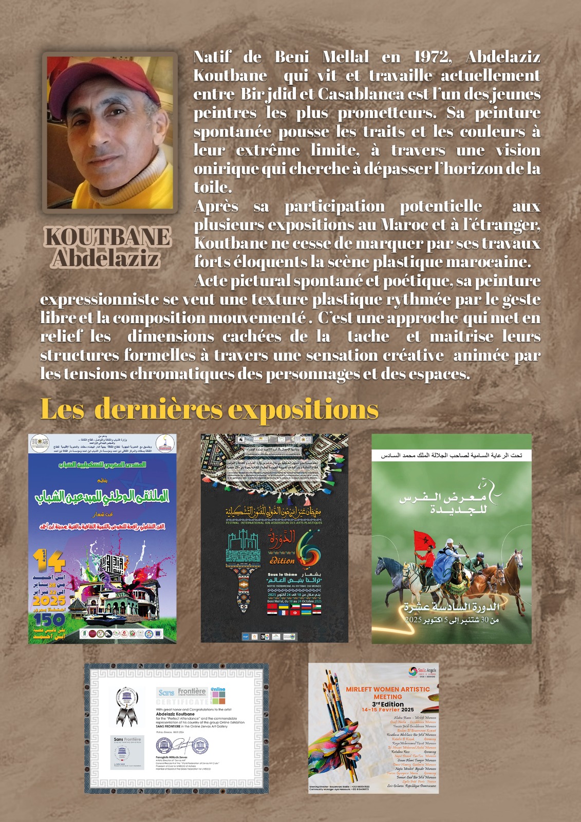 بعد مشاركته في العديد من المعارض في المغرب وخارجه، يستمر كوتبان في ترك بصمة قوية على الساحة الفنية المغربية من خلال أعماله ذات التعبير القوي. تعد لوحاته عملاً فنيًا عفويًا وشعريًا، حيث يسعى إلى تقديم ملمس بصري يتميز بالإيقاع الناتج عن الحركة الحرة والتكوين الديناميكي. إن نهجه يسلط الضوء على الأبعاد الخفية للندبة ويتقن بنيتها الشكلية من خلال إحساس إبداعي محكوم بالتوترات اللونية للشخصيات والأماكن.
