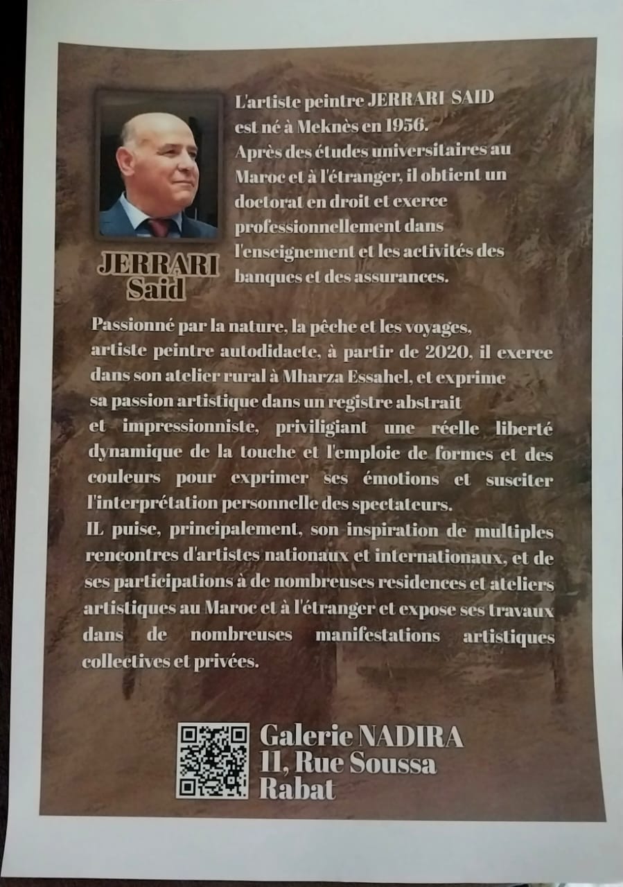 الرسام سعيد جيراري وُلِد في مكناس عام 1956. بعد دراسته الجامعية في المغرب وخارجه، حصل على دكتوراه في القانون وعمل بشكل احترافي في التعليم وأنشطة البنوك والتأمين.