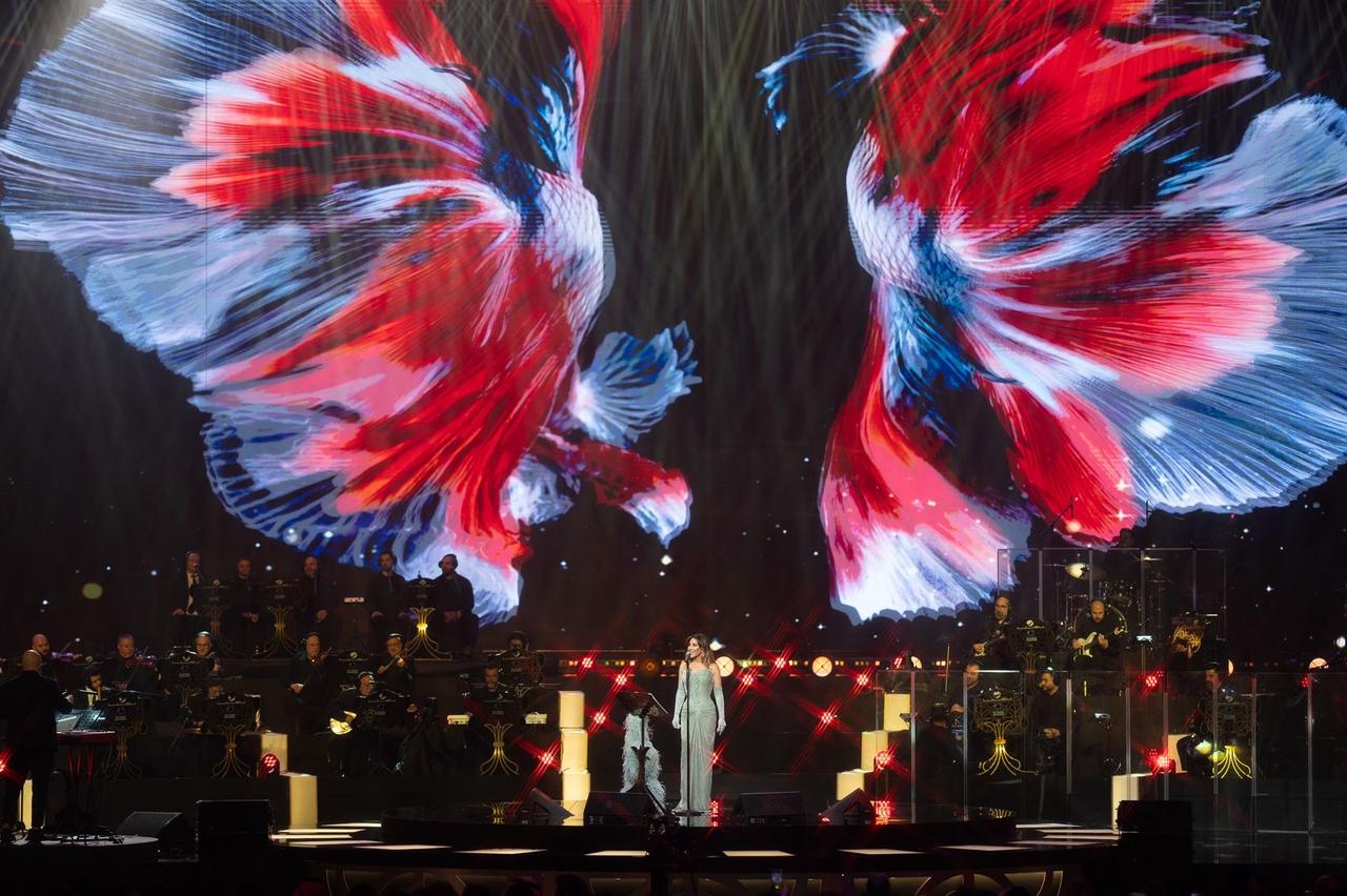 وتألقت نجوى كرم بصوتها الجبلي القوي وأدائها المتفرّد، مقدّمةً عرضاً فنياً متكاملاً جمع بين الإحساس العالي، والحضور المسرحي الطاغي، والتواصل المباشر مع جمهورها الذي ردّد أغانيها عن ظهر قلب، في مشهد احتفالي نابض بالمحبة والطرب الأصيل.