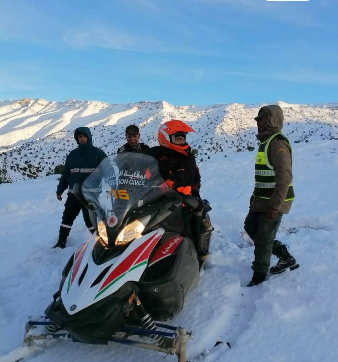 وفي إطار خطة التدخل لمواجهة موجة البرد، اعتمدت عناصر الوقاية المدنية على الدراجات الثلجية (Snowmobiles) للوصول إلى النقط الجغرافية الأكثر تعقيداً، حيث تحول سماكة الثلوج دون وصول الآليات الكاسحة التقليدية.