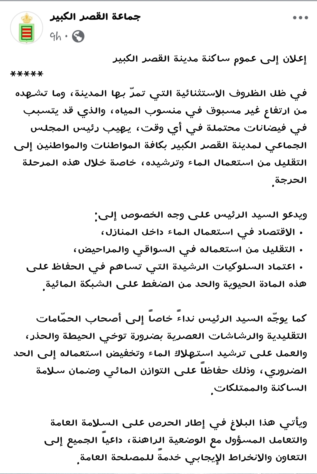 وفي الوقت الذي كانت تنتظر فيه الساكنة توجيهات دقيقة حول المناطق المهددة ومخططات الإخلاء، أصدر رئيس المجلس الجماعي بلاغاً "غريباً" يدعو فيه المواطنين إلى "ترشيد استهلاك الماء" في المنازل والحمامات لتقليل الضغط على الشبكة.