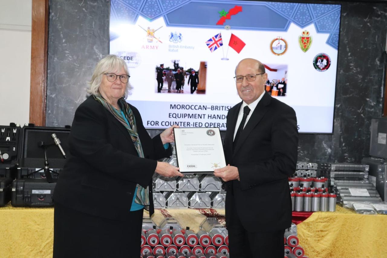 وبالتزامن مع افتتاح هذه الدورة التكوينية، تسلمت المديرية العامة للأمن الوطني معدات عملياتية تخص التعامل مع المتفجرات من لدن المملكة المتحدة، تتمثل في معدات خاصة بمكافحة الأنواع المستجدة من العبوات الناسفة "C-IED"، وذلك خلال حفل حضره ممثلون عن سفارة المملكة المتحدة بالمغرب ومجموعة من المسؤولين بالمصالح الأمنية المغربية والبريطانية.
