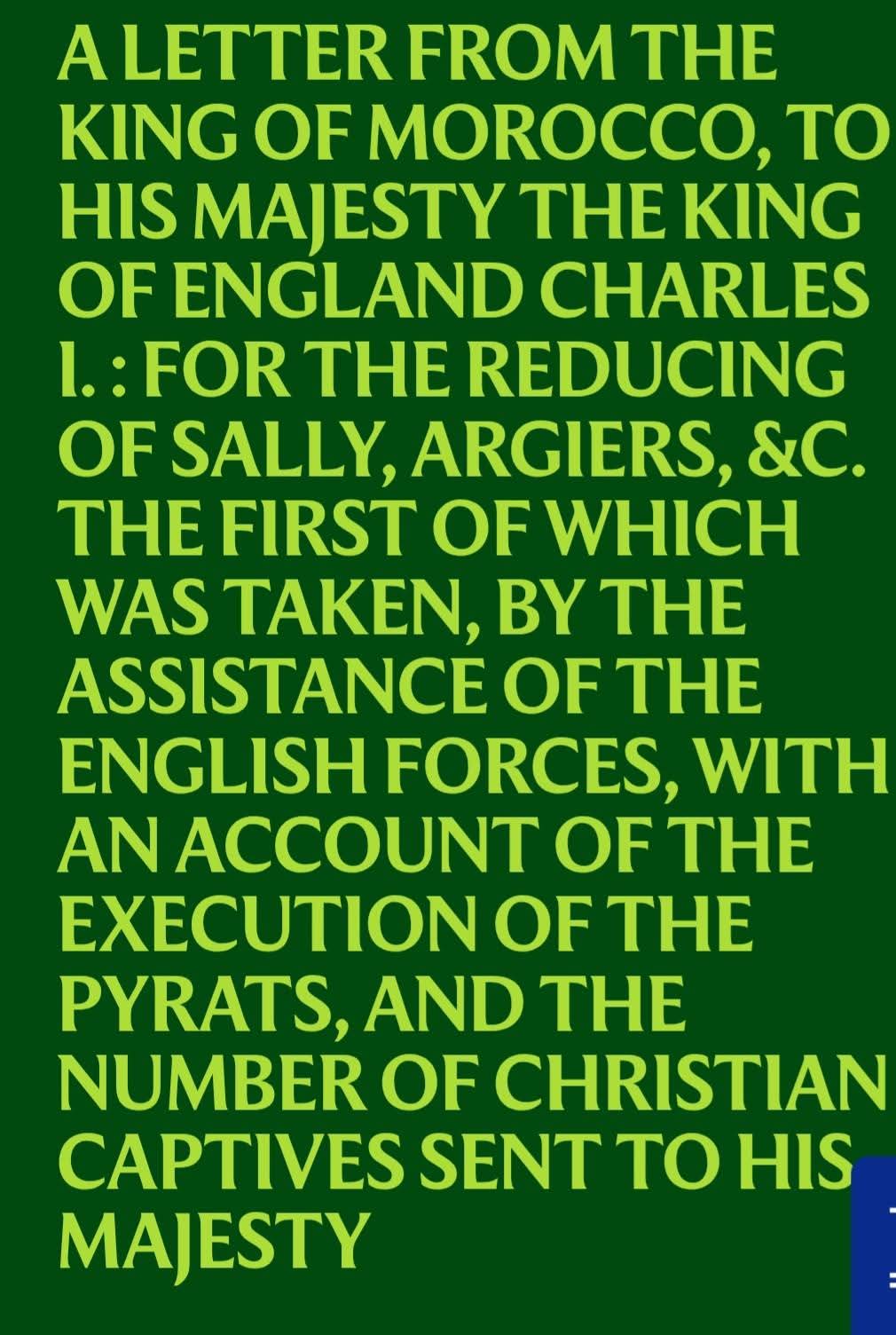 🔹️أرشيف (Early English Books Online): وثيقة رقم (A47282)، جامعة ميشيغان، مطبعة لندن، 1682 (رسالة إمبراطور المغرب).