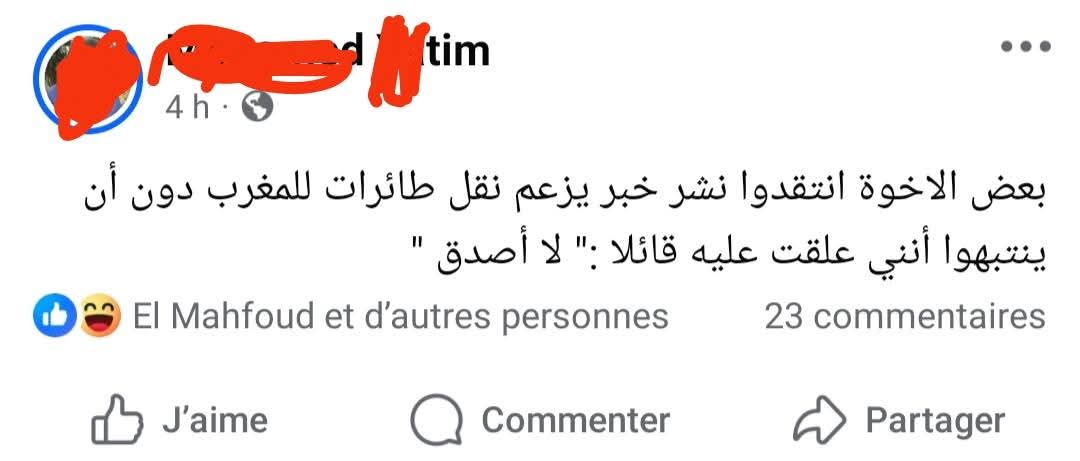إلا أن هذا الاستطراد لم يشفع له أمام رواد العالم الأزرق؛ حيث اعتبر مغردون أن "منطق التشكيك" يقتضي عدم النشر أصلاً لتفادي المساهمة في ترويج "الأخبار الزائفة" (Fake News)، خاصة في ظل حساسية الظرفية الإقليمية الراهنة.
