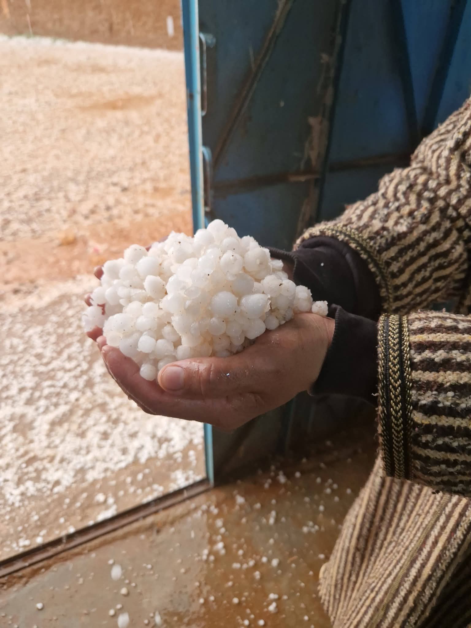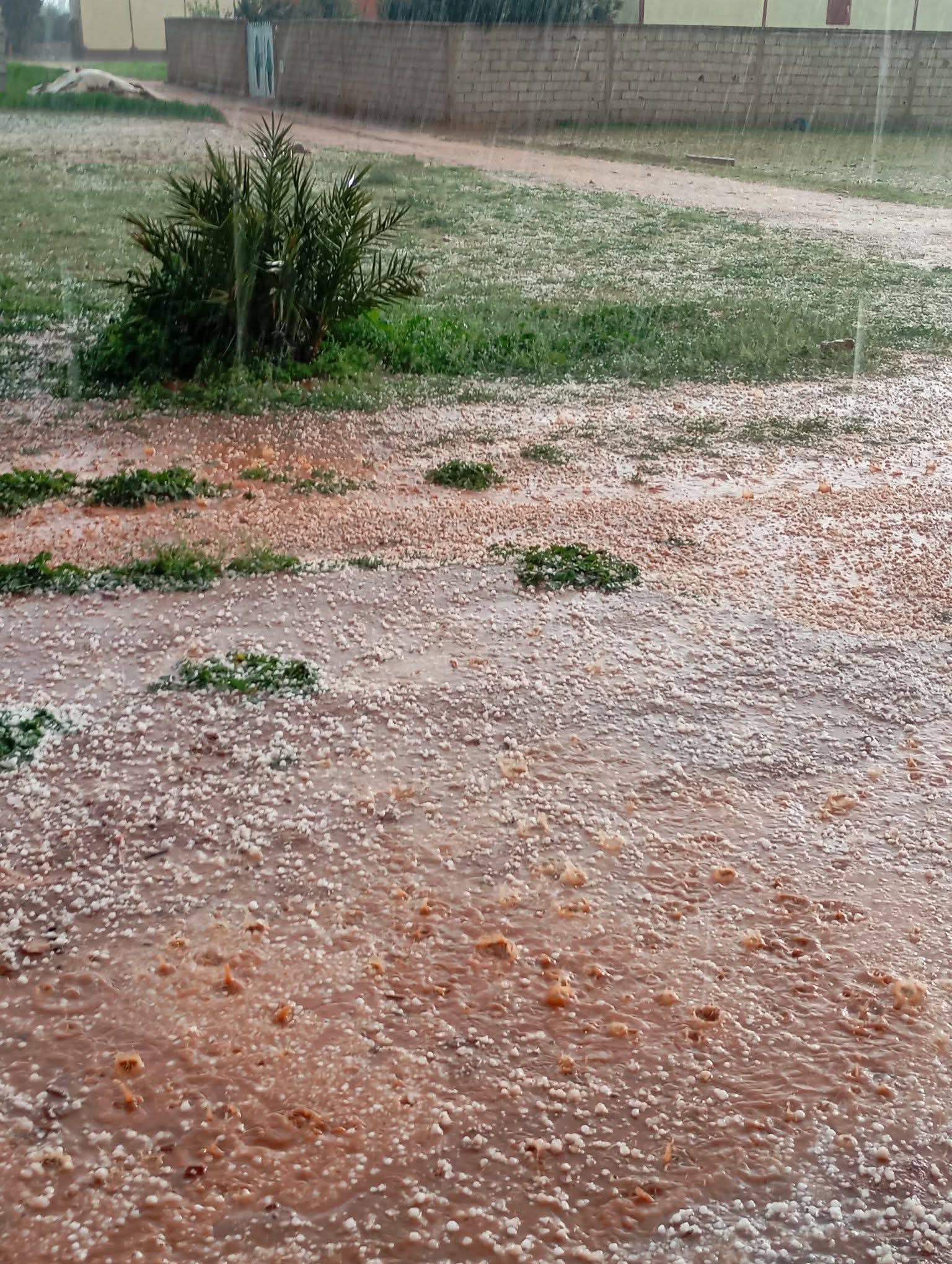 وأفاد مصدر محلي، بأن زخات مطرية قوية اجتاحت المنطقة منذ ساعات ما بعد الظهيرة، مصحوبة بتساقط كثيف لحبات البرد التي غطت مساحات واسعة من الحقول والمسالك الطينية، كما توضح الصور المرفقة.