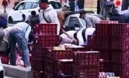 تدخل مواطنون، الثلاثاء، بساحة باب الأحد بالرباط، لإعادة السلع إلى شاحنة كانت تقل شحنة من مشروب "رايبي"، قصد توزيعها على محلات البقالة والمحلبات.