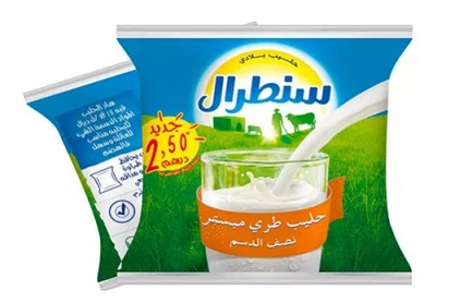 ونشرت الصفحة الرسمية للشركة على موقع فايسبوك صورة المنتج الجديد ، وهو عبارة عن كيس من حجم 470 ملل، يحتوي على حليب مبستر نصف الدسم مطبوع عليه سعر البيع المحدد في 2.5 درهم