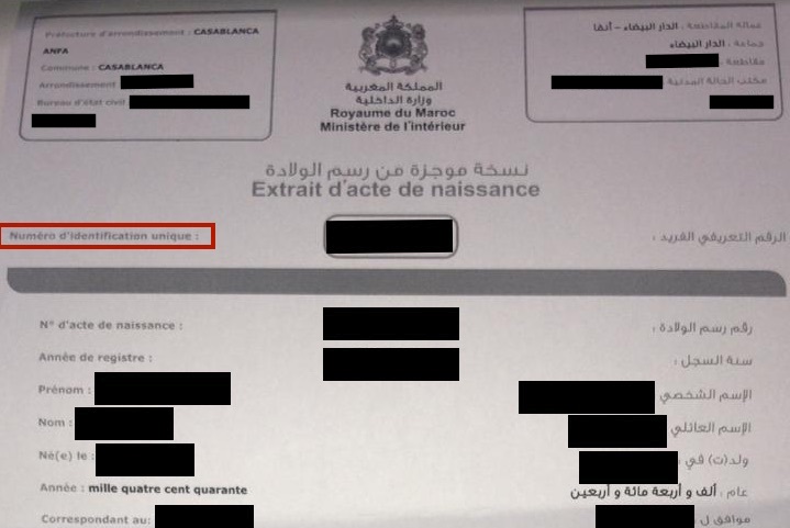 بدأت مصالح الحالة المدنية بمختلف مقاطعات الدار البيضاء في منح " الرقم التعريفي الفريد" للمواليد الجدد، ومن المقرر أن يعمم هذا الإجراء على كافة المواليد في المستقبل، وسيكون ملازما لكل مواطن مغربي منذ ولادته، ومرتبطا بكافة المعطيات المتعلقة به.