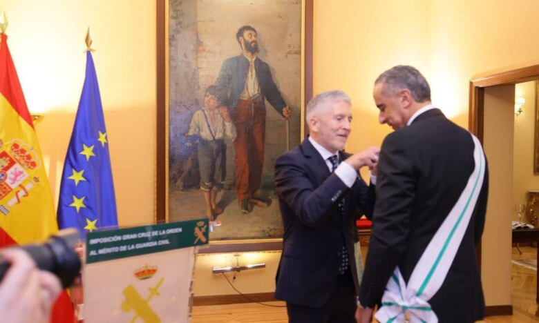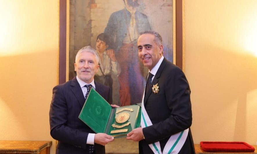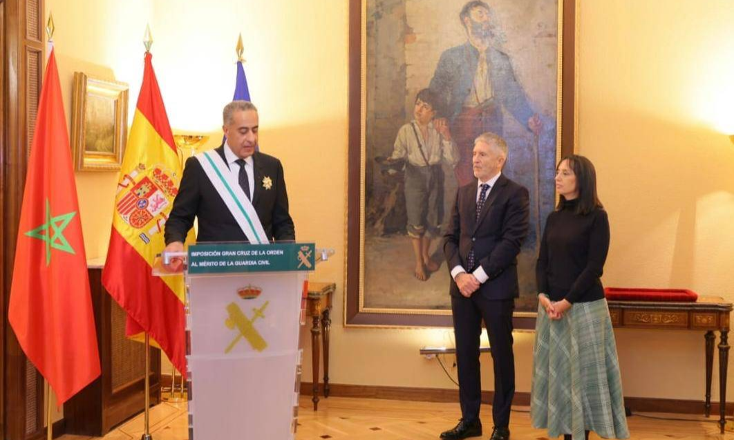 أشرف وزير الداخلية الإسباني فرناندو غراندي مارلاسكا،الثلاثاء، بالعاصمة الإسبانية مدريد، على الحفل الرسمي لتوشيح المدير العام للأمن الوطني ولمراقبة التراب الوطني السيد عبد اللطيف حموشي بوسام الصليب الأكبر للاستحقاق للحرس المدني، الذي يعد أرفع وأسمى وسام تمنحه هذه المؤسسة الأمنية للشخصيات الأجنبية.
