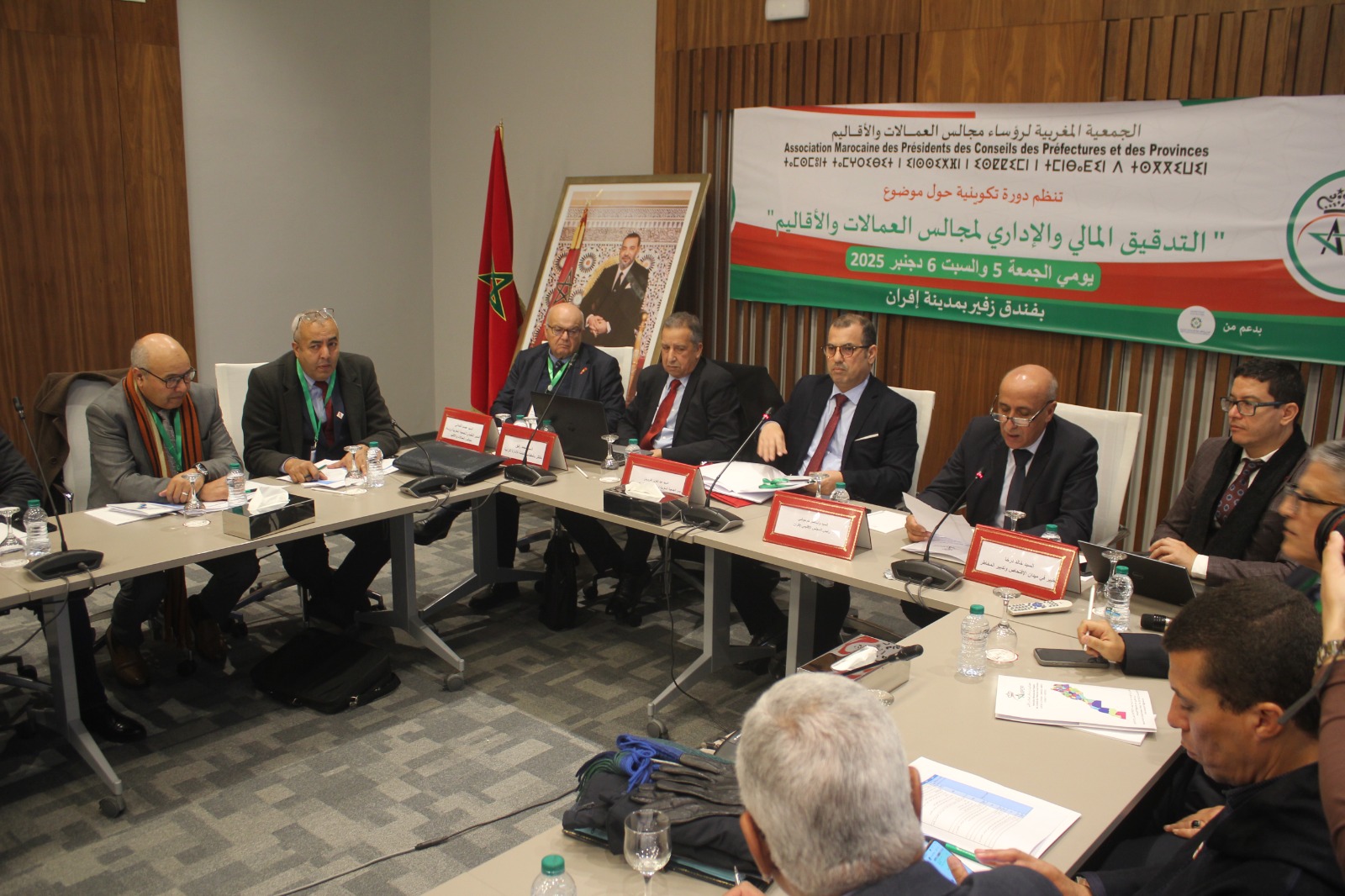 تفعيلا للأهداف المسطرة في قانونها الأساسي خاصة ما يتعلق بالإسهام بالرفع من القدرات التدبيرية للمنتخبين المحليين وموظفي المجالس، نظمت الجمعية المغربية لرؤساء مجالس العمالات والأقاليم دورة تكوينية لفائدة المدراء العامين للمصالح لمجالس العمالات والأقاليم الجمعة 05 دجنبر 2025 بفندق زفير بمدينة إفران حول موضوع التدقيق المالي والإداري.