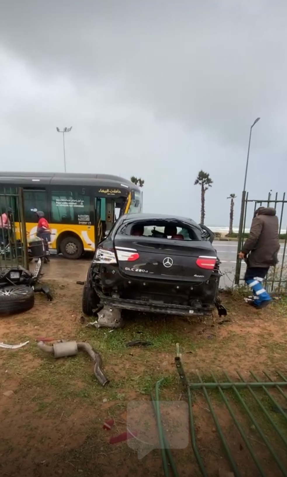 شهدت الطريق الساحلية لعين الدياب بالدار البيضاء، صباح الثلاثاء، حادث اصطدام عنيف بين سيارة رباعية الدفع (SUV) وحافلة تابعة لأسطول النقل الحضري.