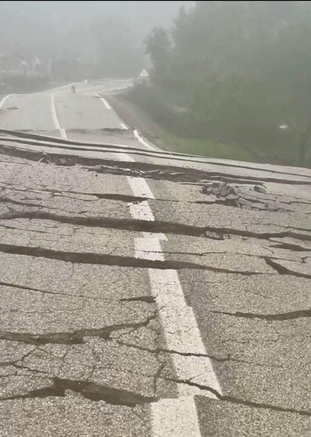 وقد أظهرت المشاهد حجم الدمار الذي طال المسالك الطرقية، حيث ظهرت تصدعات وشقوق غائرة في الإسفلت جعلت من التنقل في المنطقة أمراً محفوفاً بالمخاطر.