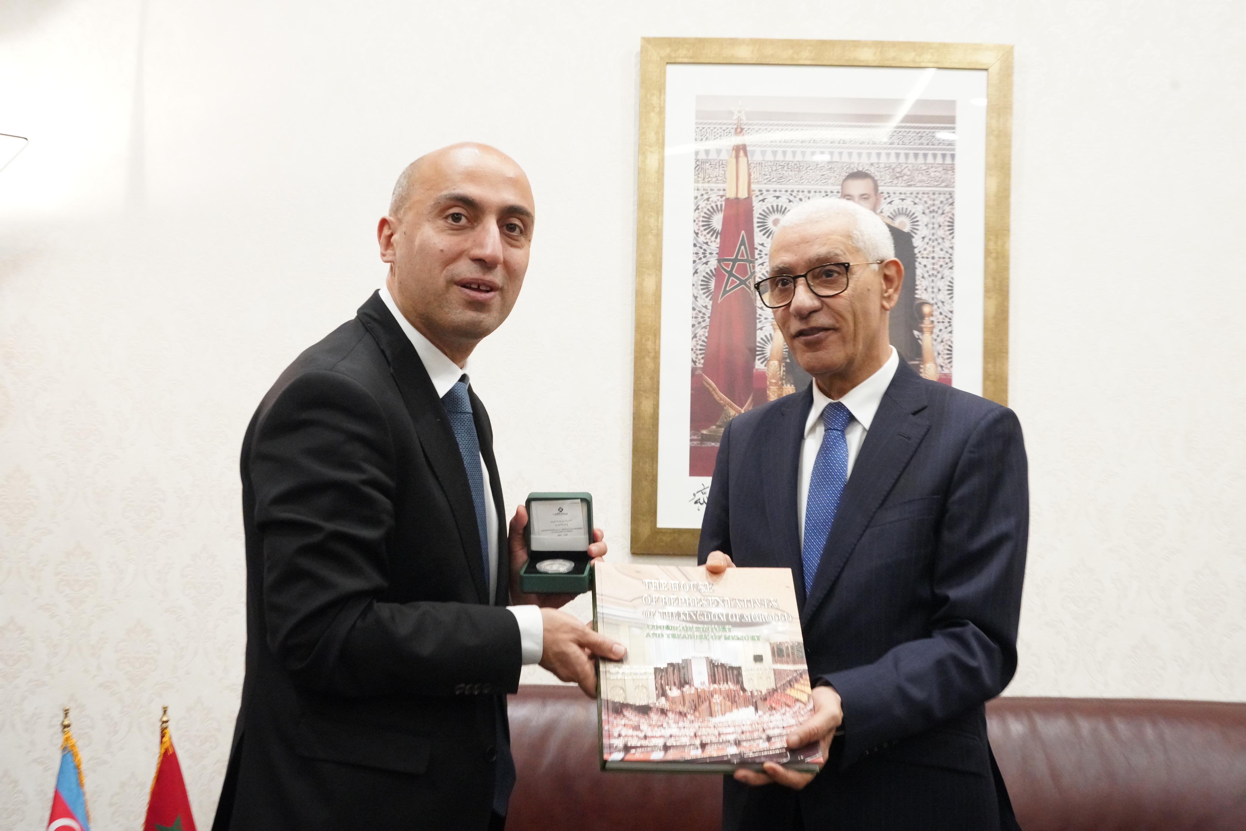 كما تطرق الجانبان للعلاقات بين البلدين الصديقين وخاصة في المجالات العلمية والتبادل الجامعي والثقافي، وكذا العلاقات البرلمانية بين مجلس النواب بالمملكة المغربية والجمعية الوطنية لجمهورية أذربيجان التي تعززت من خلال الزيارات المتبادلة وأدوار مجموعتي الصداقة، وأيضا عبر تقاسم التجارب والخبرات البرلمانية.