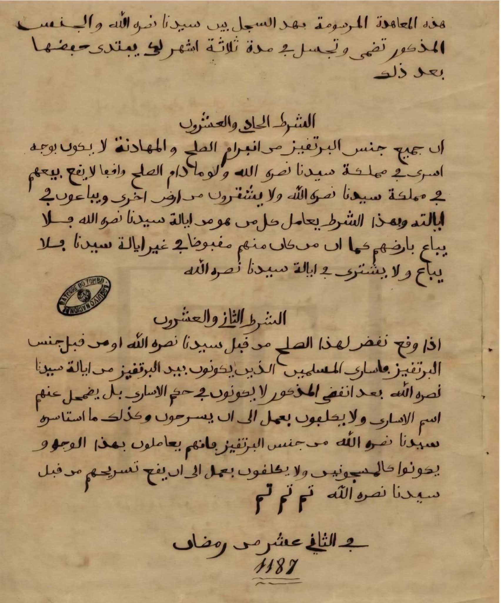 ◾️الأرشيف الدبلوماسي البرتغالي: وثائق المصادقة الملكية الموقعة في لشبونة بتاريخ 1774 (Ratificação do Tratado de Paz e Amizade).