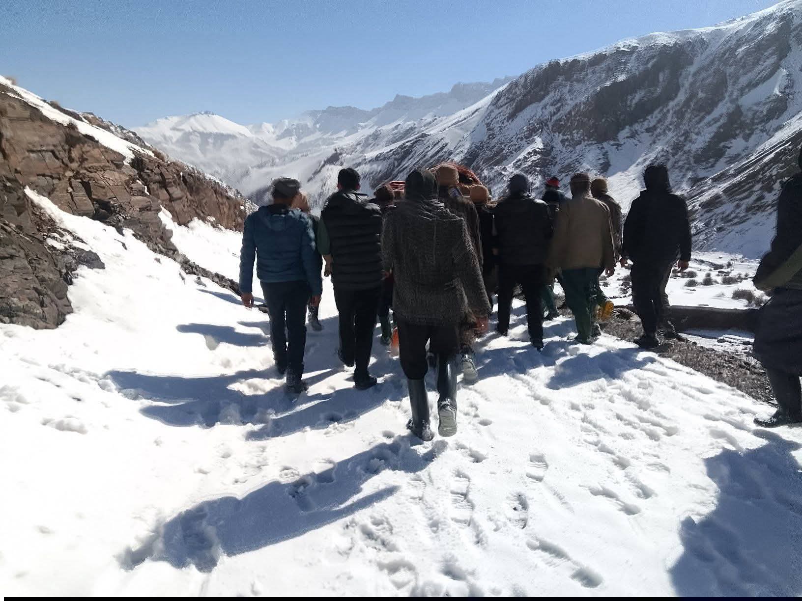وحسب معطيات ميدانية أوردها الناشط الجمعوي مصطفى المليح، فقد ظل المريض يئن من الألم منذ يوم الخميس في ظل ظروف مناخية قاسية، ومع انقطاع المسالك الطرقية لأزيد من ثلاثة أشهر، لم يجد رجال الدوار من حل سوى ربط المريض بالحبال داخل "نعش" خشبي وضمان تثبيته، ثم حمله على الأكتاف لمسافة تزيد عن 5 كيلومترات عبر مسالك وعرة وصولاً إلى منطقة "تاجگاگالت".
