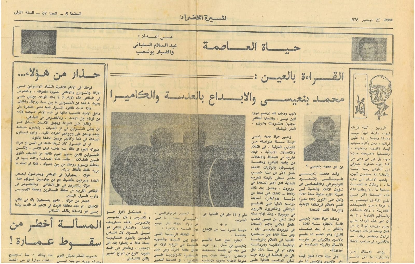 في أحد الصباحات، من شهر ديسمبر سنة 1976 وأثناء اجتماع التحرير، كلفني الفقيد سي محمد الطنجاوي، رئيس تحرير صحيفة "المسيرة الخضراء"، بإجراء حوار موسع مع سي محمد بن عيسى، بمناسبة إقامة معرض لأعماله الفوتوغرافية، في قاعة "المعمل" بالرباط.