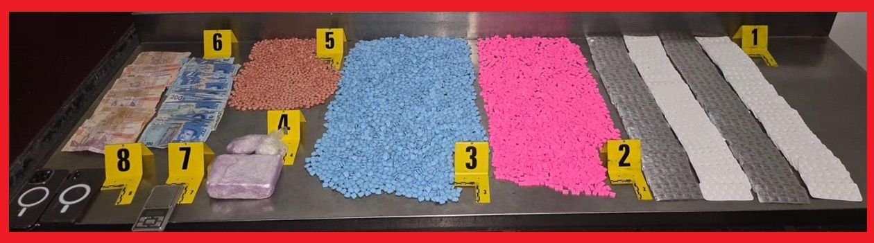 ومواصلة لإجراءات البحث في هذه القضية، أسفرت إجراءات التفتيش المنجزة بمنزله عن حجز 9335 قرصا مخدرا، من بينها 2520 قرصا من نوع "ريفوتريل" و6815 قرصا من نوع "إكستازي"، بالإضافة إلى 520 غراما من الكوكايين، ومبلغ مالي يشتبه في كونه من عائدات ترويج المخدرات، إلى جانب دراجة نارية من الحجم الكبير يشتبه في تسخيرها في هذا النشاط الإجرامي.