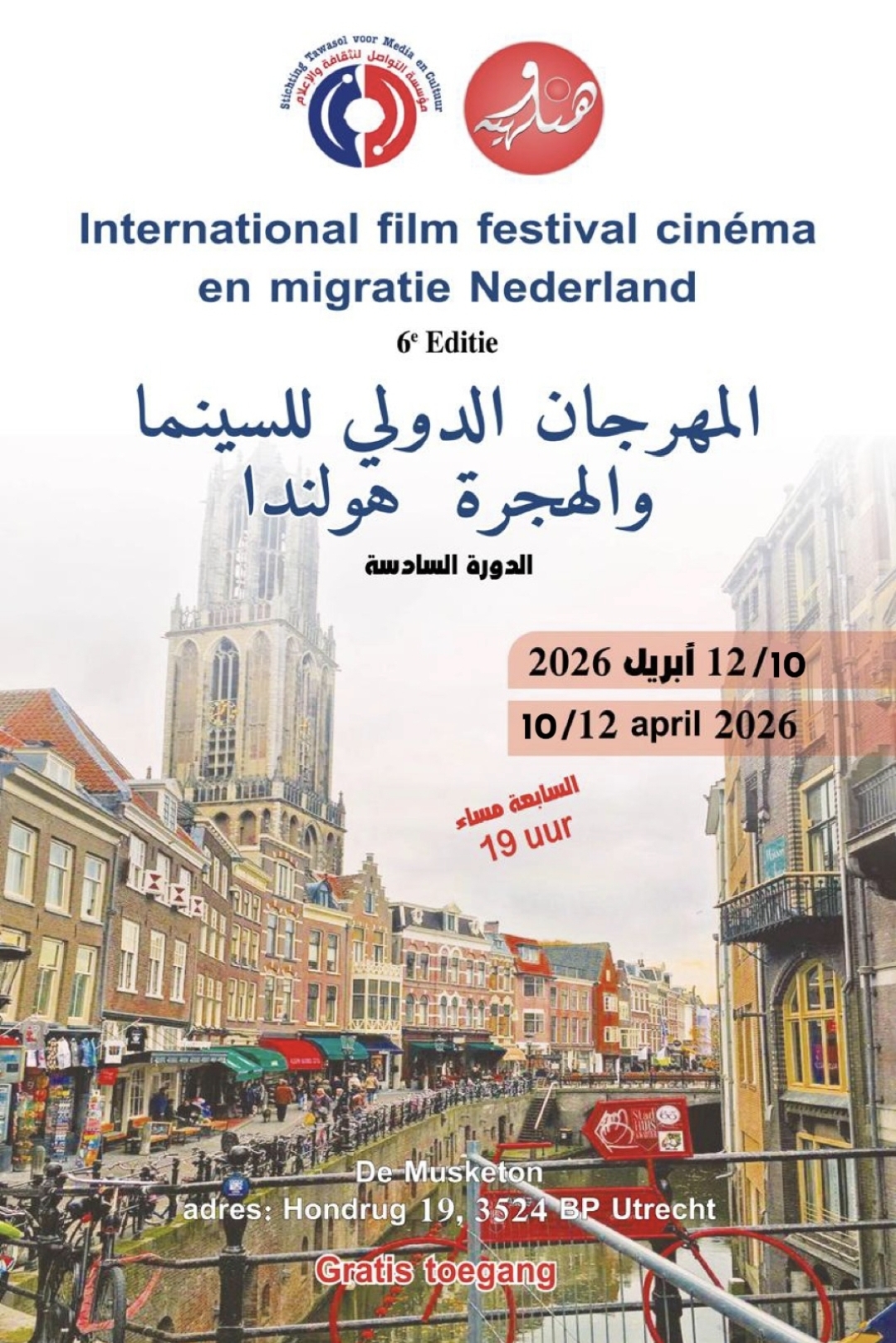 تنظم مؤسسة التواصل للثقافة والإعلام بهولندا الدورة السادسة للمهرجان الدولي للسينما والهجرة والذي سينعقد في الفترة ما بين 10 إلى 12 ابريل 2026 بمدينة أوتريخت.