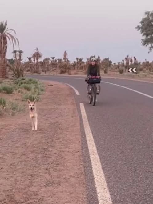 وفي تفاصيل القصة، كان الزوجان في رحلة بالدراجات عبر الصحراء المغربية، قبل أن يصادفا كلبة صغيرة تجري وراءهما بلا توقف، ورافقتهما لمسافة طويلة تصل إلى 80 كيلومترًا، رغم الجروح التي أصابت قدميها.